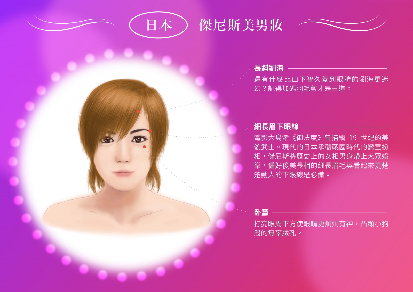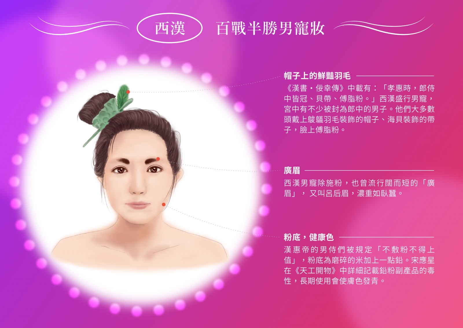 看今日 95 後偶像與小哥哥(?)們的妝容也一一影響著青少年對外觀的選擇,亞洲的男性化妝歷史,若說傾國傾城不為過,可從中國漢朝談到日本平安時代、再看回日韓哥哥流如何影響男性們的外觀打扮,以下是化妝新手都該認識的幾款歷代 TOP 男性妝容: