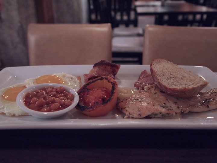 其實兩家店的菜單有一點差別,All Day Breakfast 是兩家都有提供的,但中環店只提供到下午六點,銅鑼灣店就是全天侯供應。那天我特別去吃晚飯,想都不用想就點了 All Day Breakfast ,在香港可以品嘗到英國的傳統早餐:煎蛋、培根、烘培豆、番茄,還加了一片烤雞肉。一邊吃,一邊感受濃濃的英倫氣息。