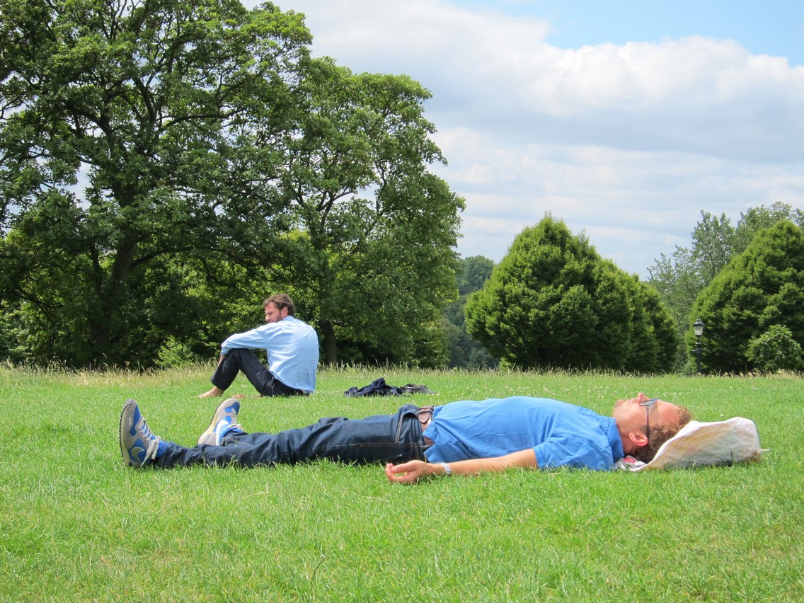 在我心目中,一個完美的大城市除了要有一條美麗的河流,還要有大片綠地,一個可以在溫暖陽光下野餐度過週末的公園。上次造訪倫敦時,自己一個人晃到海德公園匆匆一瞥,沒看出個所以然,這次 Janette 帶我到她最愛的野餐聖地:位於攝政公園北邊的 Primrose Hill;以前在比利時認識的學長也加入我們風和日麗的行程。