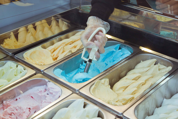 高雄駁二入口處,有棟四層樓的米色建築,遠望像幢尋常民房,卻隱隱可以感到一股雀躍的氣氛在明亮的窗內活動著。走近一瞧,一樓落地玻璃內是大片灰白色混凝牆並淺色木材,除此之外則是沁涼的藍綠色粉刷牆面,以及,一整個冰櫃內繽紛亮眼的冰淇淋!