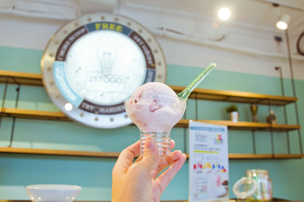 25TOGO 每一家店都有不同的主題,高雄駁二這家旗艦店之所以名為 Bright ,乃因冰品食來暢快,舌尖觸上冰淇淋的剎那就像通電般「叮」地激亮了感官,思緒也跟著清明。依循這個概念,店內便以燈泡的概念包裝冰淇淋,牆面上的燈泡造型裝飾、在國外找到的別緻「燈泡掛燈」懸置天花板,甚至是盛裝冰淇淋的透明塑膠杯亦特別訂製成燈泡底座,當店員舀起一球飽滿的百香果冰淇淋放於之上,在我們這種好吃之徒的眼裡,簡直就如同個光芒萬丈的金黃小寶貝。好吧,說光芒萬丈似乎就太超過了,不過他們的冰淇淋不只賣相可愛得讓人想速速一親芳澤,實際入口後也味美令人欣喜。