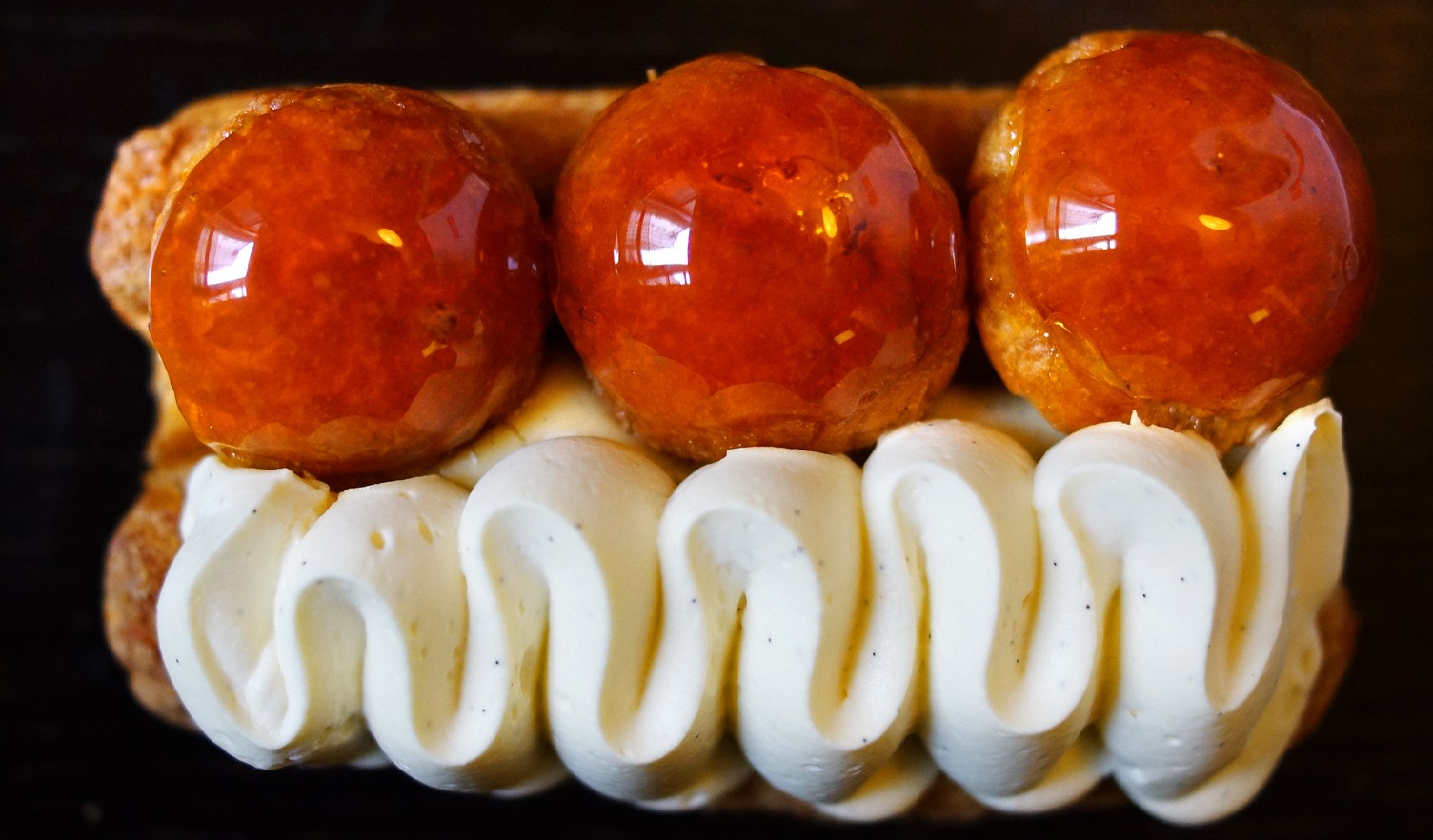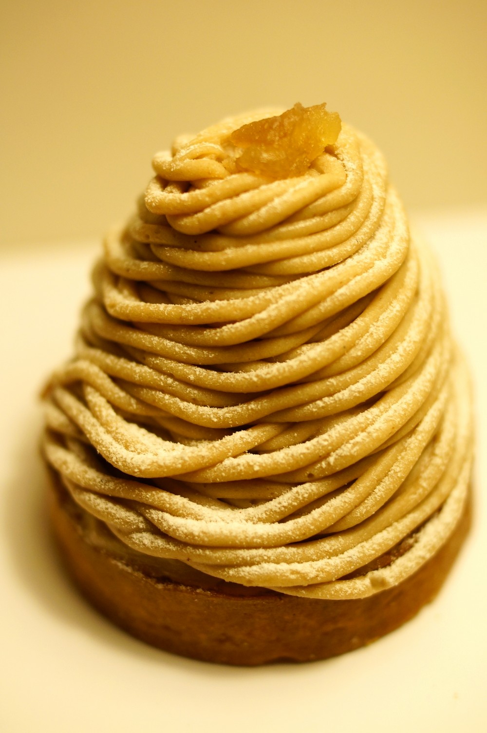 蒙布朗.Mont Blanc,以白朗峰命名的栗子塔在傳統作法是一個酒味極重、甜得嚇人的甜點,在 Conticini 優雅的詮釋下,用煨煮過橙皮的打發鮮奶油取代傳統的甜膩蛋白霜;質地細緻綿密的栗子奶油,甜中帶甘,甘中帶香;底層酥脆的塔皮內是質地、風味更為厚重的栗子泥與栗子丁,點綴以熱帶果香馥郁的蘭姆酒。整款甜點嚐來變幻不止,風味一下由輕轉濃,口感由柔轉脆,下一秒又是芬芳的果香及豪邁得令人詫異的酒漬栗子。很多人認識蒙布朗是因為巴黎另一家以此出名的店家,但我以為巴黎最棒的蒙布朗其實在 La Pâtisserie Des Rêves。
