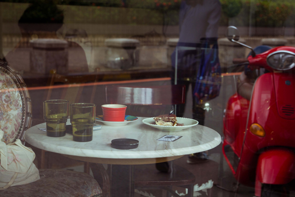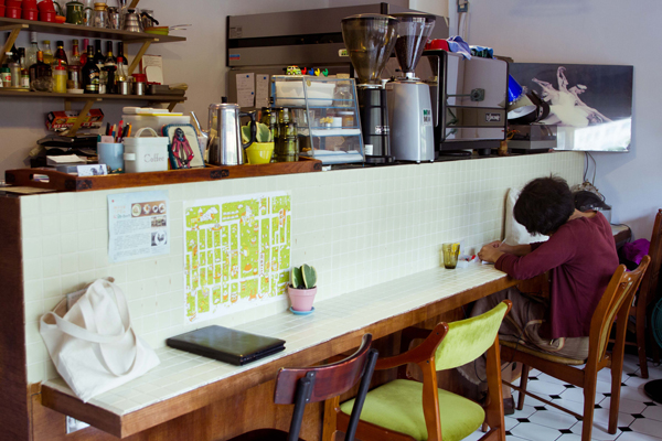 彷彿歐洲咖啡廳的玻璃拉門,不算太大的空間,拉門外悠閒熙攘的人群、拉門內聊著天或獨自享受一段安好時光的客人,皆可窺探到對方,也都不甚在意,彼此把對方當作值得欣賞的好風景。訪問當天,我們即看到幾位穿著瀟灑不羈的年輕人,在店裡店外輕鬆自然的來回,在街道上寒暄、拍照,甚至幫對方理髮;喝了口咖啡,就去外面發發呆,一點也不突兀、也不覺得擁擠。這樣有點嬉皮的氣氛令人嚮往,這是他們的店,他們的生活方式,就在這家小小的咖啡廳裡。