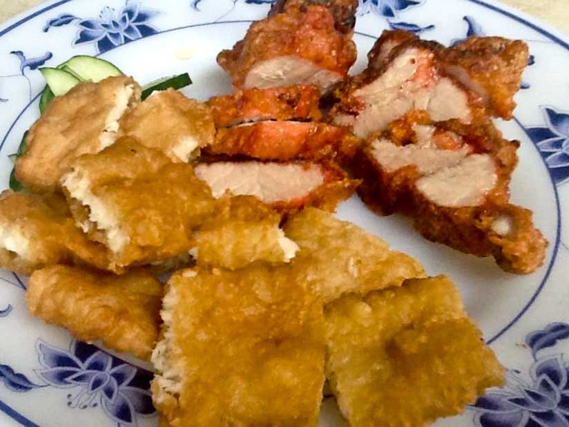 萬華周記肉粥的紅糟肉頗負盛名,周記紅糟肉用偏瘦的五花肉,厚度很好,蘸點醬咬來彈性極佳,再舀一匙熱騰騰的肉粥飲下,鹹香醇厚,一時口腔內充斥著經由長時間火候才釋放的、動物的鮮甜,身心靈就此得到莫大安慰。不過,雖然肉粥一碗只要十五元,但周記紅糟肉索價甚昂,天下果然沒有白吃的午餐。汀州路一段與西藏路交叉口有一小片店,所賣雞捲、紅糟肉、炸三鮮、炸豆腐堪稱一流,炸物點得太多,所幸配肉粥慢慢地吃,倒也不覺負擔。雙連附近小巷內的肉粥攤子也有賣絕佳的紅糟肉、炸旗魚,這樣古樸而雋永的風景,台北從來也不缺少。