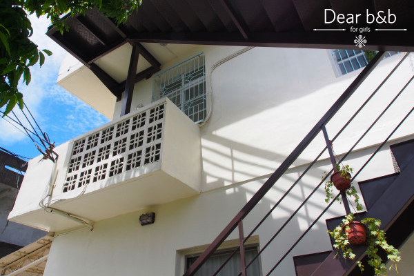 三樓,漆白的圍牆傳送了簡單生活的信念。一間間的雙人房,保留了一些些老屋的元素,那高高的門檻和玻璃窗花彷彿替旅人封存了一個回憶,自舊時於今,而一個單純只屬於妳的空間,讓妳放鬆舒服,不覺愜意哼著歌。