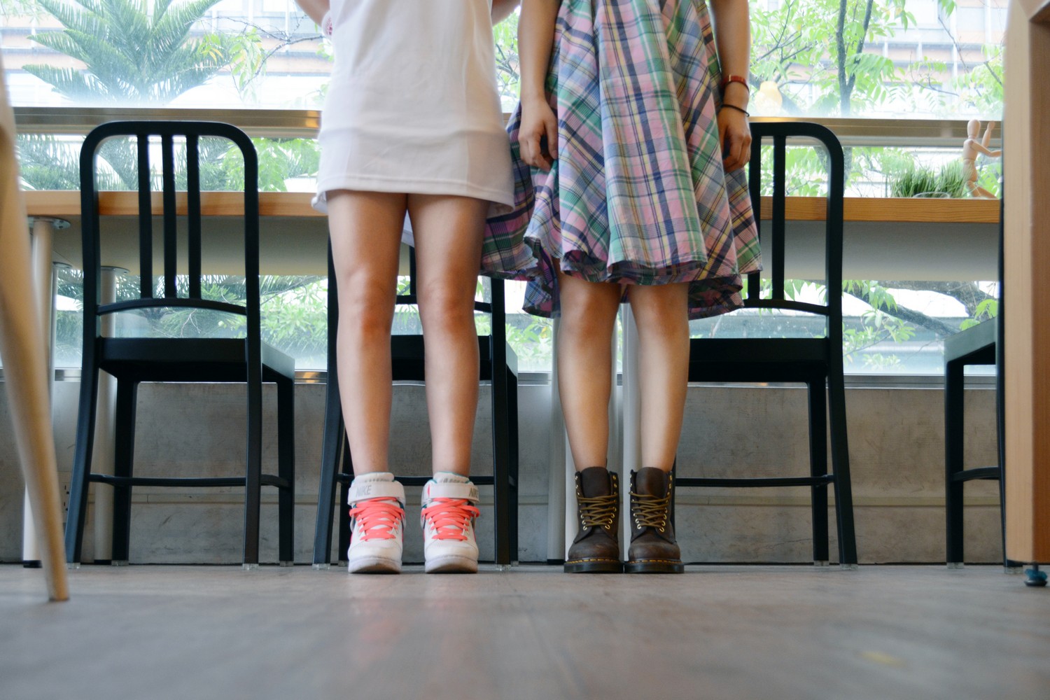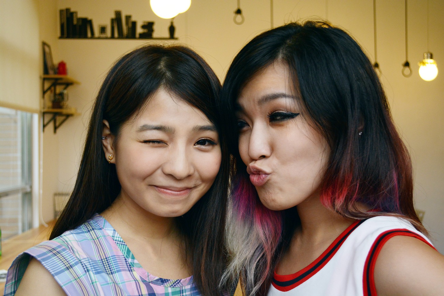 明明是陰雨的下午,看賴盈螢(辣子)身穿籃球衣大咧咧走進來,彷彿她披戴而來的永遠是無雲的晴天,恣意而張狂。鍾琪一身藍色粉彩格紋洋裝甜美自成一個溫暖的小宇宙,她在其中隨意翻手成風、覆手成雨,悠然自得。她們身上的那種理所當然,好像無時無刻都有聚光燈打在她們身上,隨著場景跳躍、情緒轉換,能夠隨時切換到另一張臉、進入另一個角色的狀態。