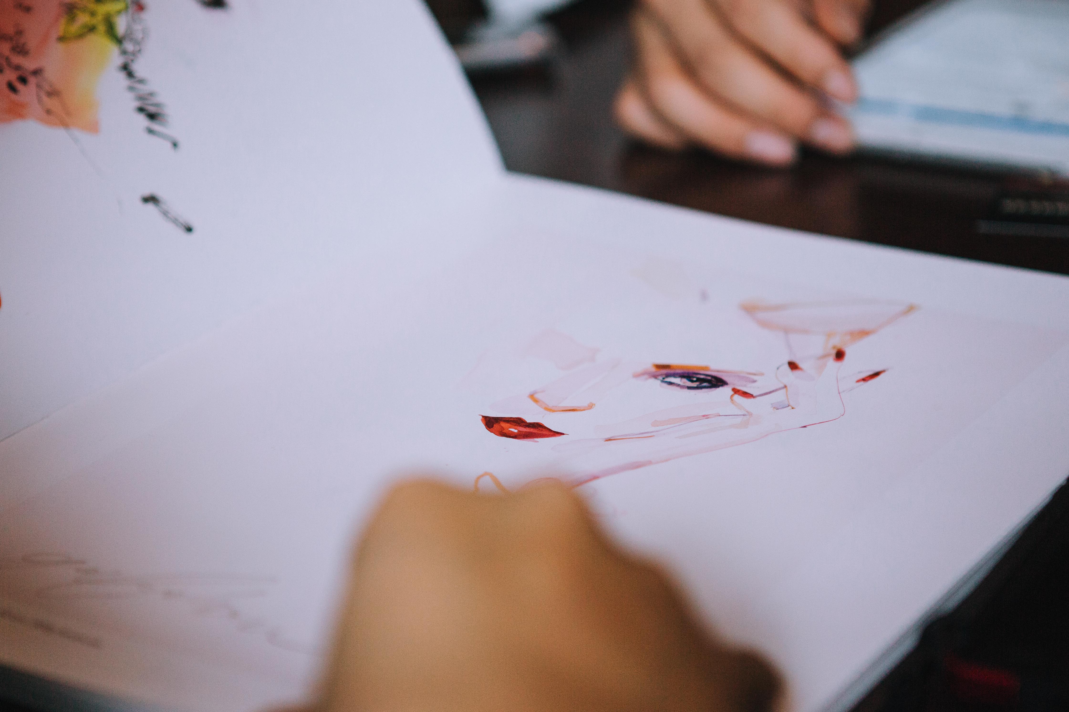 最後我們聊回他帶來自己的時尚插畫作品集,裡頭盡是簡單,流暢,行雲流水的水彩畫作。