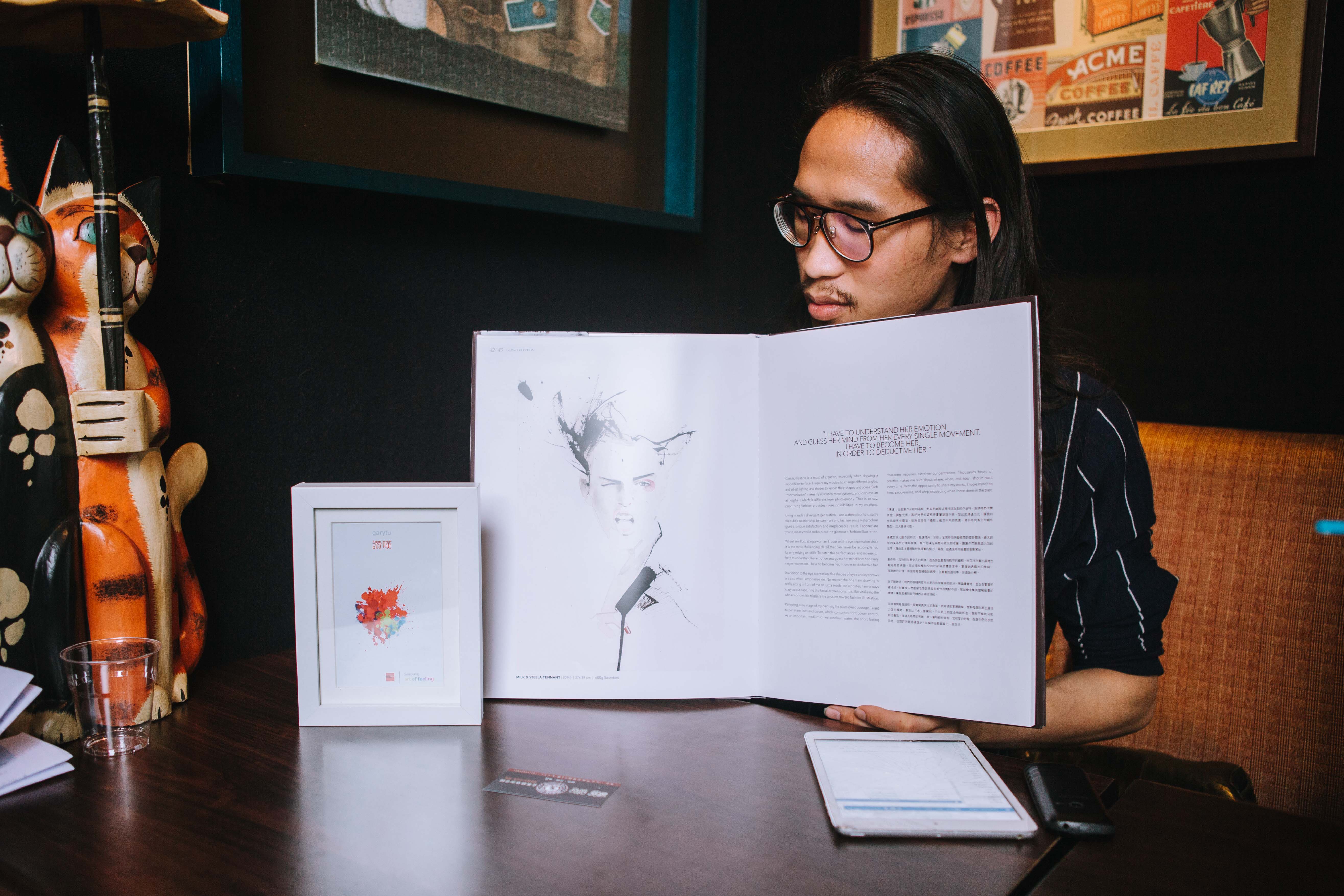 這個下午,他向我們細數每張圖的狀況。有些作品得要重畫兩三次,也有一次就成功的時候。他說有一回,因為久久抓不準構圖的位置而暴怒,把圖紙亂撇一通之後摔在地上,卻意外找到新的角度。如今看來極簡的,都來自過去的苦功。雖然現在陪伴每一張圖的時間變少,但他不以為苦,「畢竟我很幸運能做自己喜歡的事。」只是 Gary Tu 也擔心,時尚潮流會退去,「所以現在我要很商業,要趕快存錢啊,可能十年流行過了,就去當補習班老師,最爛了不起就是再回去便利商店打工。」