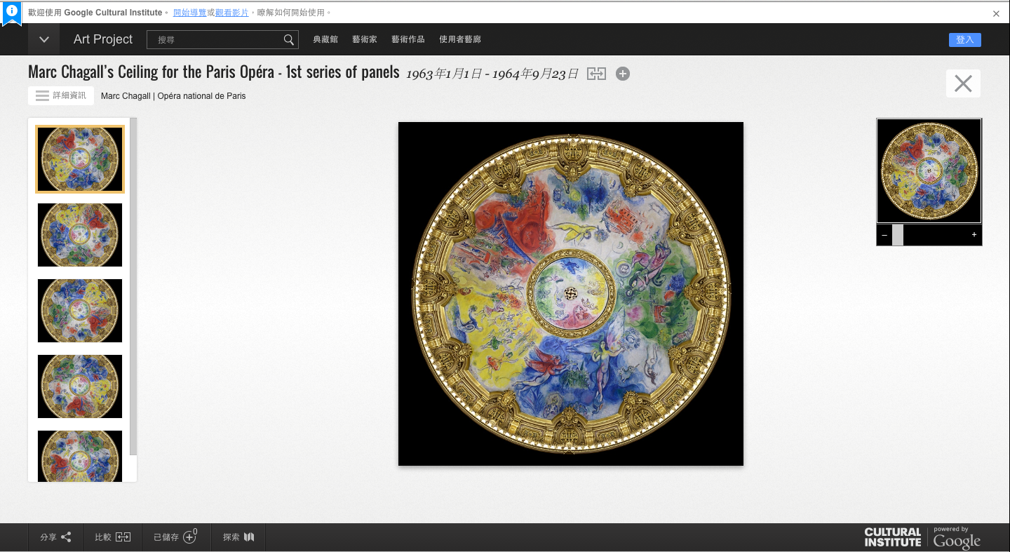 最經典的例子,是 Google 的團隊花了四天時間,把 Marc Chagall 在巴黎歌劇院天花板、總面積達 220 平方公尺的作品拍攝成數位影像。完成後,竟然讓 Marc Chagall 的兒子發現,原來自己被老爸畫進作品裡──如果不是數位化後放大檢視,他一輩子都不會察覺。