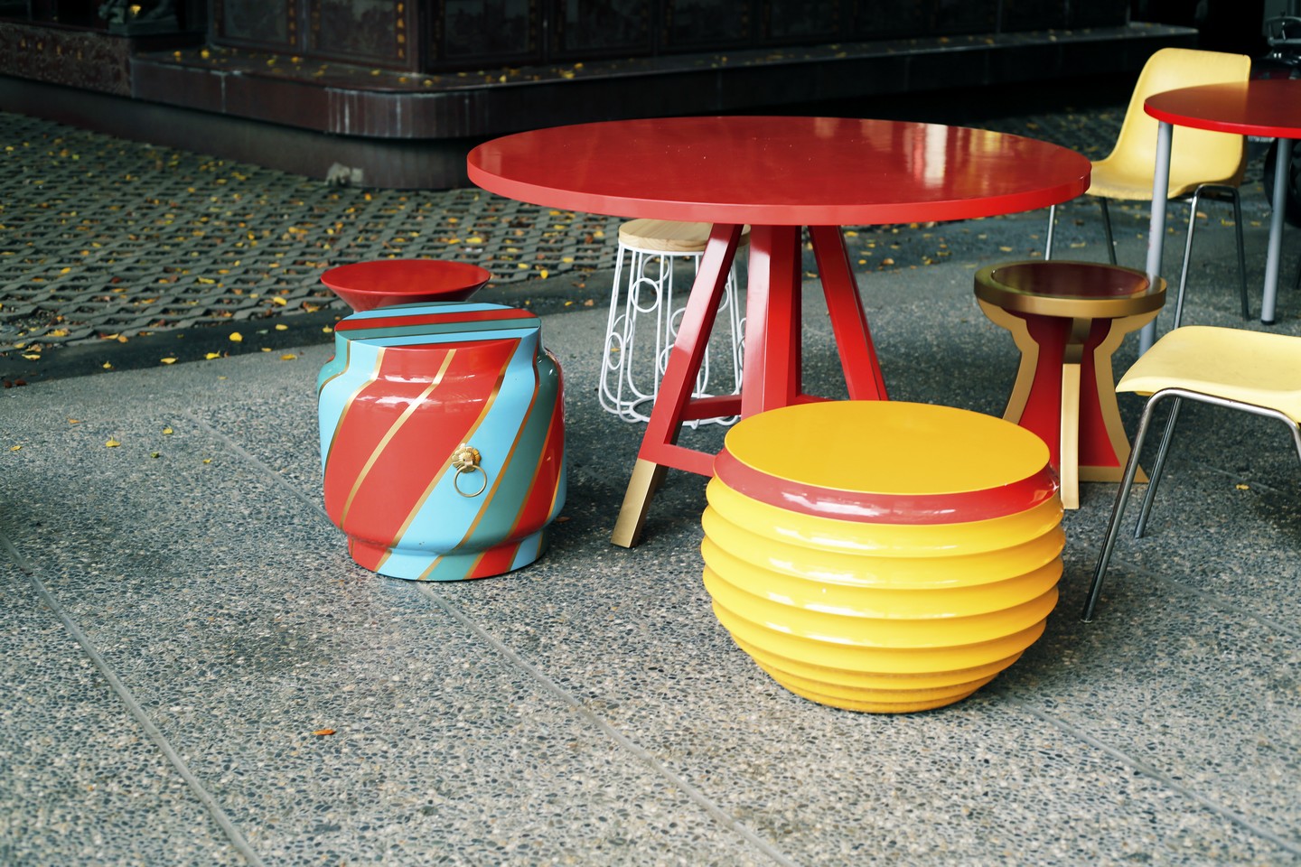 體會到興農宮對居民生活的重要後,基金會特地邀請國內外五組創作團隊,利用現有的街道景象做最低度的介入,運用創意去活化環境景觀,既能保留傳統特色,又能帶有現代前衛的美感。像設計師蔡易成就以廟宇的建築色調和線條,設計了一組桌椅「廟語系列」,供居民們閒聊談天的時候使用;興農宮旁的水泥磚塊,則被藝術家林育正添了條尾巴,就在巷弄中的牆角和榕樹下,搖擺著向你打招呼,希望讓你能擴展對街道上常見物品的想像,讓生活變得更調皮有趣。