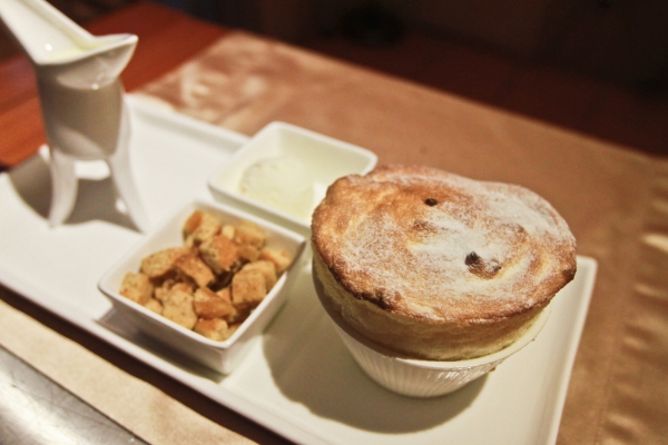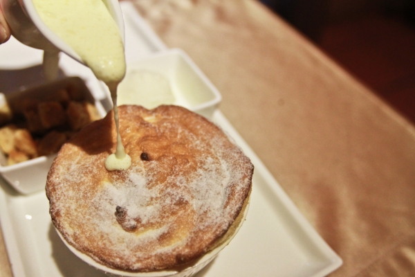 反觀阿布,極盡專注於完美。溫熱生蠔外酥內嫩,一縷微甜的海鮮味佐菠菜醬汁奇異地在口腔內平衡,山珍與海味,兩者譜成某種出乎意料動聽的和弦;舒芙蕾( Soufflé )蓬鬆而微潤,質地輕盈得幾乎使人難以分辨舌尖上融化的究竟是空氣抑或糖粉,蛋奶醬內餡甜度掌握得剛好,成為滋潤這蓬鬆麵體的最佳底襯。
