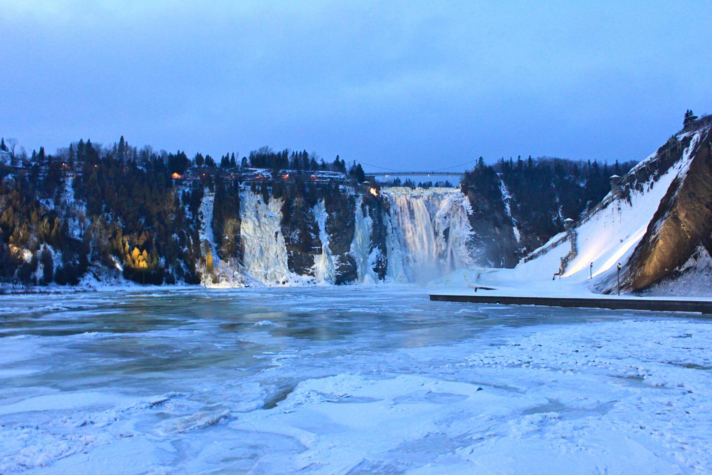 而在身為北美洲最古老要塞城鎮的魁北克城,2008 年剛過完 400 歲的生日,新城包圍著舊城區,帶著衝突的美感。當年的城堡已成為地標酒店-芳堤娜城堡飯店( Chateau Frontenac Hotel ),居高臨下地環顧四周,而距離市郊十分鐘車程的蒙特倫思瀑布( Montmorency Falls ),它的高低落差是尼加拉瓜瀑布的 1.5 倍,更是魁北克不能錯過的美景(走近瀑布一些你還能體驗水花在眼睫毛上結冰的感覺,此生難得!)。