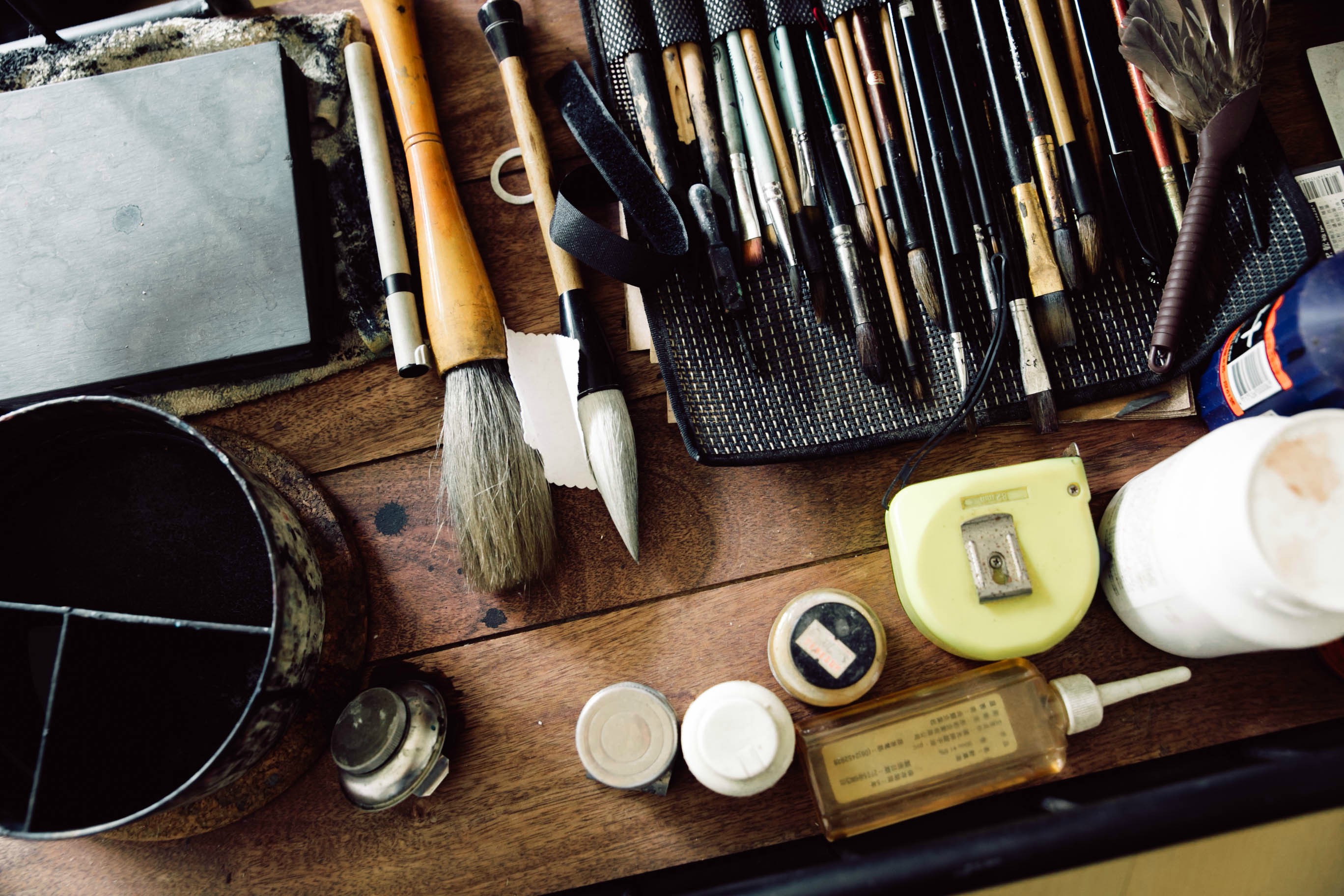 小子的家就是他的工作室,位於永和安靜的巷弄中。乍看,也許不會覺得這是一位「設計師」的工作室,而是一位藝術家樸實、舒適的工作空間,牆邊立了幾幅他寫的字、油畫,充滿不修邊幅的直接生命力。