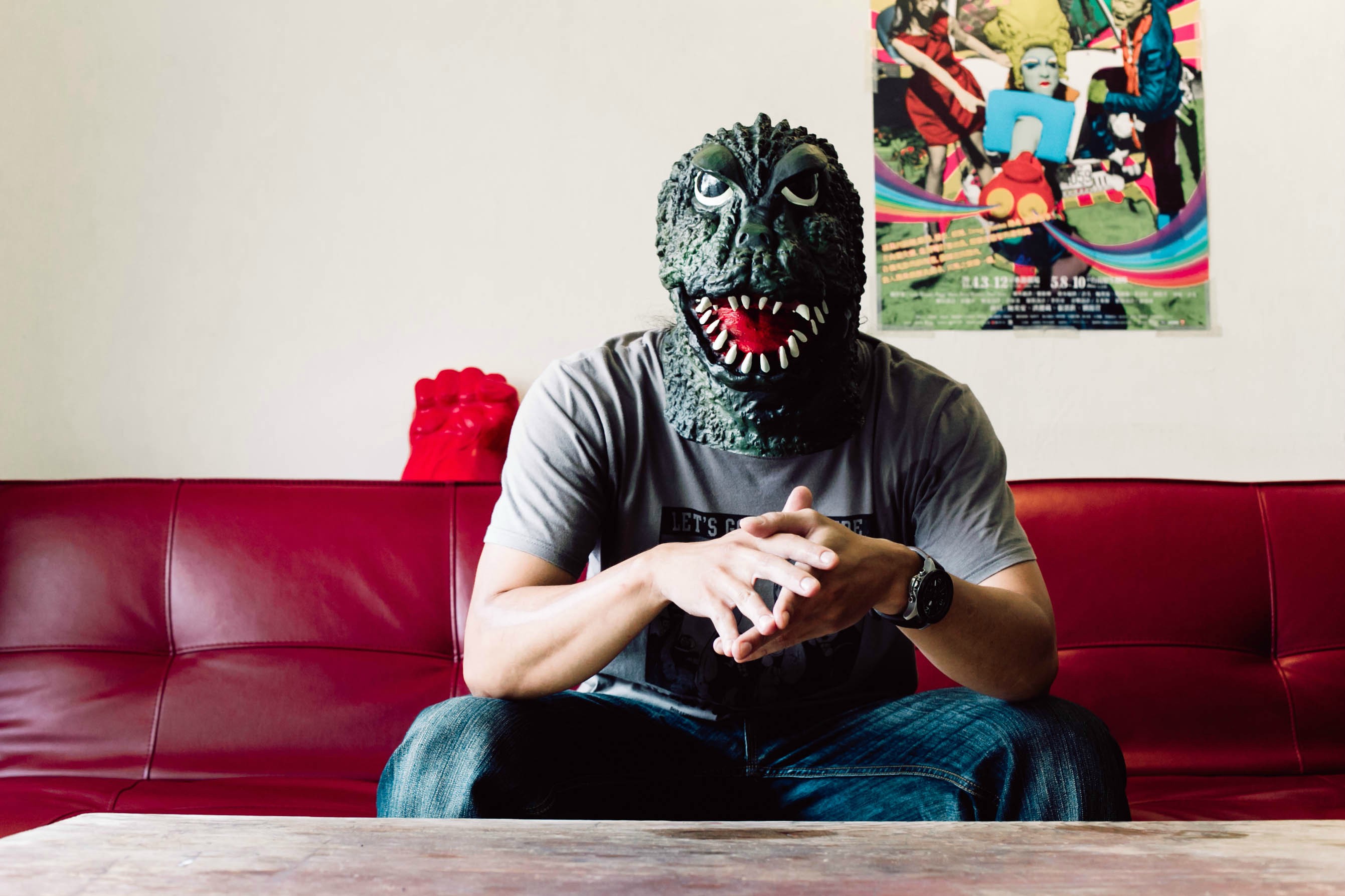 如此投入案子,也常讓小子自嘲很瘋狂。他和逗點文創結社長期合作,設計了多本書的書封,也是許多人認識小子的開始。在他逗點的作品中,他特別滿意海明威《太陽依舊升起》的封面,條碼般波動的紅裙,簡約優美。「午夜巴黎」三部曲的書封皆是由他設計,各自呼應非常有趣。還有但唐謨《約會不看恐怖電影不酷》,彎曲的詭異字樣和骷髏頭,也是他相當滿意的作品。另外《陸上怪獸警報》的故事也很吸引小子,迷戀怪獸的他,哥吉拉也是他的偶像,帶點「新世紀福音戰士」風格的封面,鮮豔對比色也很吸睛。