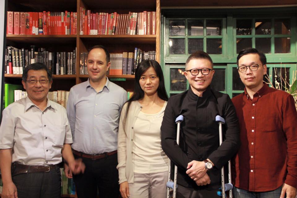 (左起:唐山書店老闆陳隆昊、博磊、夢田文創執行長蘇麗媚、老爺酒店集團執行長沈方正、導演侯季然。夢田文創提供)