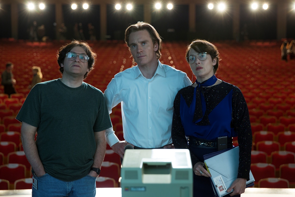 更妙的是架構。索金/鮑伊這次選擇的,是呈現主角生涯三場重要的發表會:1984 的麥金塔,1988 的 NeXT,1998 的 iMac,三個年代三種攝影風格,三趟人生轉折與處境,一是世人追不上他,二是他繞道潛行,三是終於和歷史交會了。而在這三場會前——亦即,世人最熟悉的那個舞台上的他,的一個小時前——透過準備,或敘舊,或獨處,劇本巧妙地將賈伯斯的工作性格,私人情感,創業恩仇,乃至親情障礙等等全部交融交代,和下屬的權力階級,和家屬的難堪對待,和摯友的義氣衝撞,甚至是「復仇」子題,都透過話語和剪接,變成不下於孤燈下,冬風裡,劍客過招的刀光血影。三段各自四十分鐘的緊湊好戲,全結束在登台的光亮起:舞台如人生,但有些更真實的衝突和掙扎,是唯有下台,才有心思體會的。
