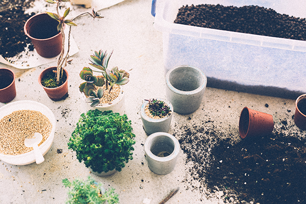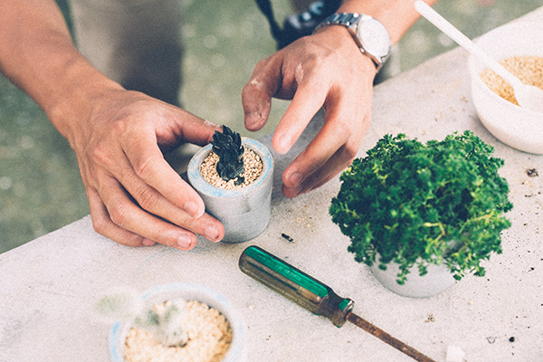 了解了多肉植物基本的特性後,接者,我們在小山舍的園子中進行「換介質、換盆 DIY」。一般我們在花市或園藝店買回來的植物,常常是以培養土及椰纖來種植,這兩者成本較低,又具有保濕保肥的特色。但是,植物不可一直依賴培養土及椰纖,差不多在種植三個月後,會因為跟空氣、水接觸而慢慢硬化。所以,買回一棵新植物,一定要記得幫他們進行換介質的手續!