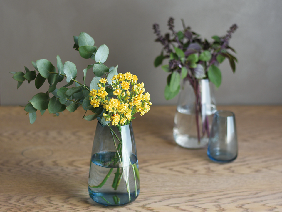 AQUA 水生花器,以明亮的玻璃材質,為您獻上專屬於水生植物的美。想要進行種植計畫、讓空間多一點綠意,總是令不是綠手指的我們苦惱。這個時候就選擇水耕吧!AQUA 花瓶的設計,令人能輕鬆地照顧只需要水而不需要光的室內植物,包含香草、多肉植物、花苞或種子;清澈的玻璃材質,有透明與藍灰兩種顏色,讓人能夠近距離觀察植物草葉的延伸,以及水中根葉的生長;成為桌上或窗櫺邊的一隅風景。