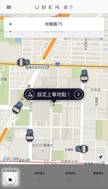看電影就是要有專屬司機送你到現場!「MC 秘密電影院」活動當天更推出限時限區的 UBER 秘密電影院司機專送服務,3/27 民眾只要打開UBER,即可發現地圖上出現秘密電影院司機的特別車種可以預約,只要選擇「MC 秘密電影」,並成功預約叫車,就能讓 UBER 秘密電影院司機「免費」送你到活動現場。