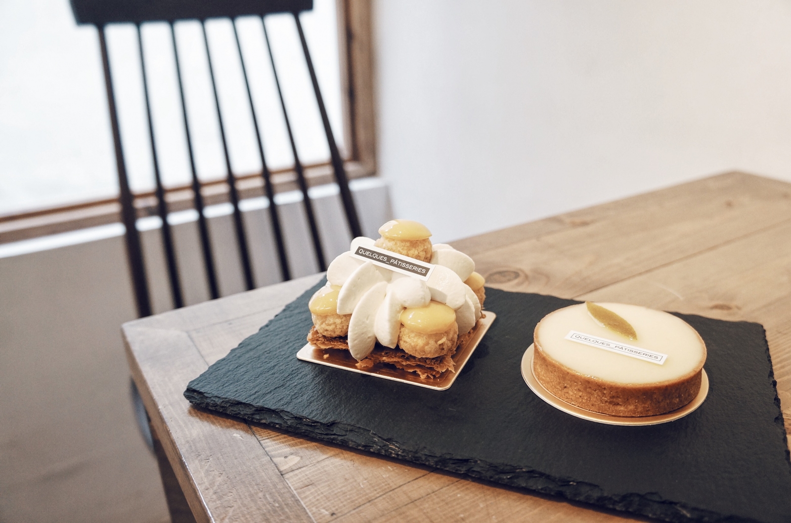 圖4:台北 Quelques Pâtisseries 某某。甜點的鳳梨茉莉花聖多諾黑(左)與檸檬塔(右)(攝影:Ying C.)