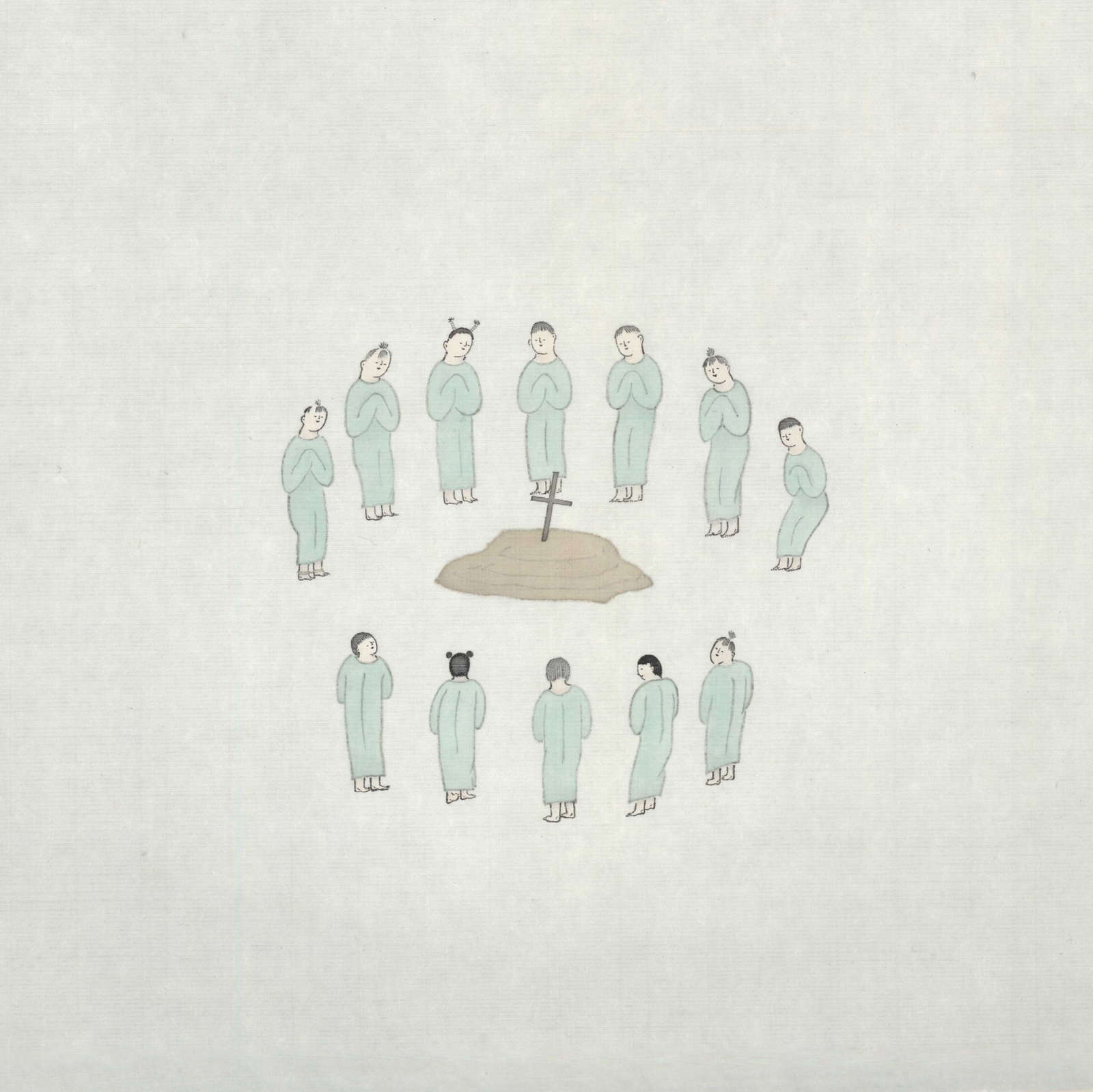 《哀悼》,33x33cm,2016,絹本、水墨設色