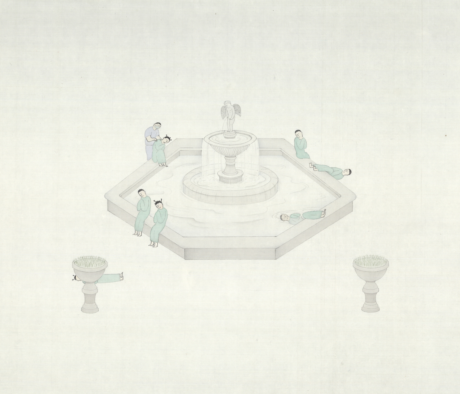 《噴泉》,40x50cm,2016,絹本、水墨設色