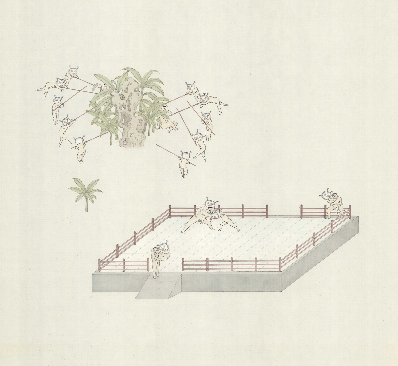 《擂台》,60x65cm,2016,紙本、水墨設色