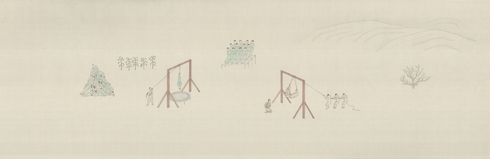 《精神病與虐待狂》,45x140cm,2016,紙本、水墨設色
