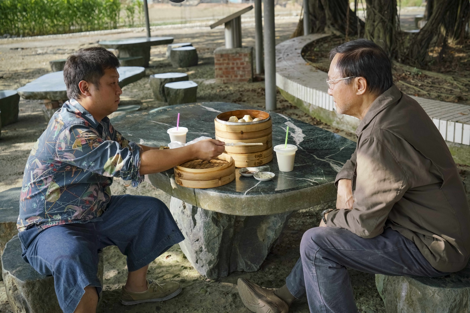老許掏錢把毒販從一場莫名的喪禮中救出,毒販最後找回老許、付了車資並一起吃小籠包。電影中一場表現兩人關係轉變的戲十分細膩,老許與毒販剛經歷完一場生死關頭,中彈的毒販坐上老許的車,當中有趣的地方在於,在這幕之前毒販都是坐在後座(司機/顧客的關係),而這幕老許主動開了前門的門(朋友/親故的關係)。
