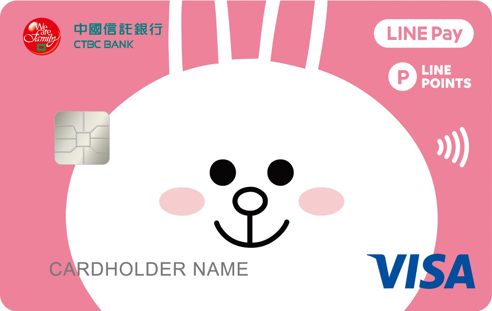 中國信託 LINE Pay 卡(以下稱 LINE Pay 卡)首波推出共 10 款卡面,上市首年最高回饋卡友LINE Points 3% 點數回饋,且使用 LINE Pay 卡的一卡通儲值金支付全台大眾交通工具,再享 1% LINE Points 點數回饋(高鐵除外)。LINE Points 點數可於 LINE 貼圖小舖、LINE 主題小舖、LINE 禮品小舖使用。