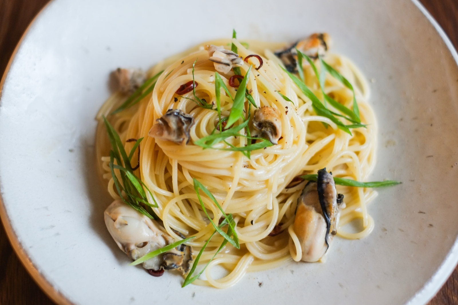 | 季節限定牡蠣蒜辣義大利麵,採用義大利知名品牌 De Cecco 的麵條 ,吃起來彈牙順口。悉心挑選食材,不過份料理,吃出新鮮好味道。 |