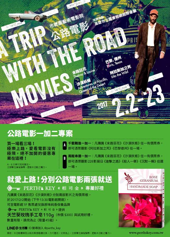 高市總圖週四藝術電影院在二月推出「公路電影」系列,主辦單位高雄市電影館獨立策展,網羅四大公路電影經典:開創女性公路電影先河《末路狂花》、同志公路電影聖經《沙漠妖姬》、文溫德斯的公路之詩《巴黎,德州》,以及體驗生命的極限《阿拉斯加之死》,邀請影迷回味三十年前的傳世經典。