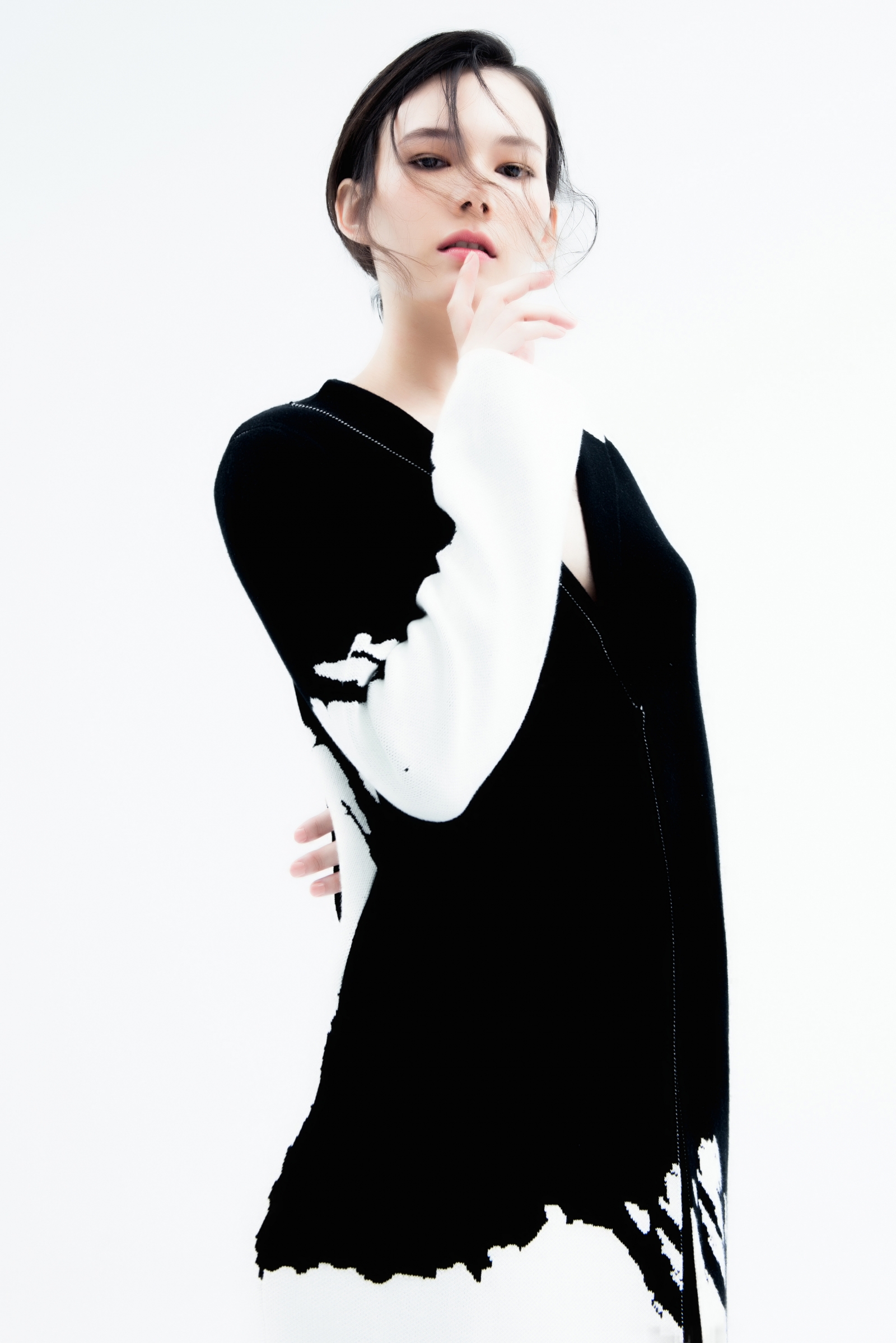 此次主題形象照邀請紀培慧以其豐富的演員歷練,跨刀演出《線的進行曲》中線與線之間流動的對話氛圍。紀培慧柔軟堅毅的氣質與對於未來不斷探索的好奇心,呼應此次跨界合作中磅礡墨寶與服裝線條間剛與柔的結合,一同探尋書畫與時裝設計間的無限可能。