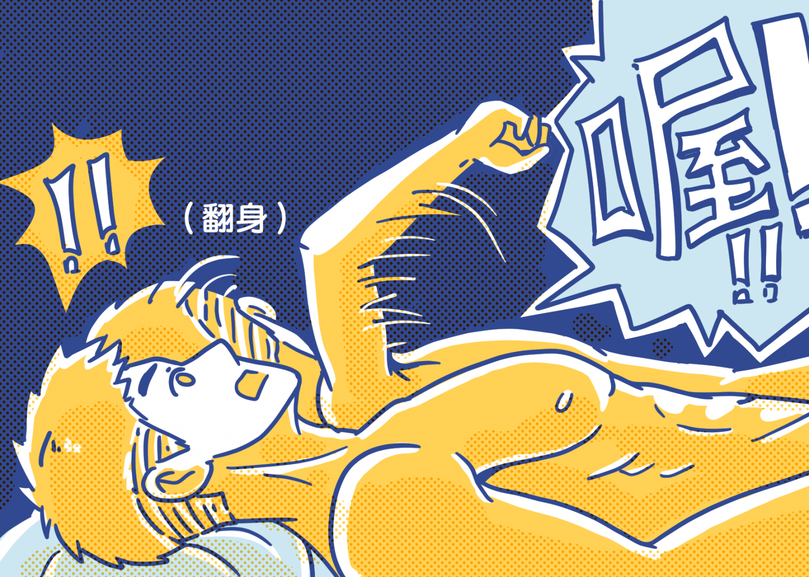 他仰臥在我的身旁,一身嶙峋的瘦骨,當他翻動身子,他那尖稜稜的手肘不意撞中我的側面,我感到一陣痛楚,喔的叫了一聲。